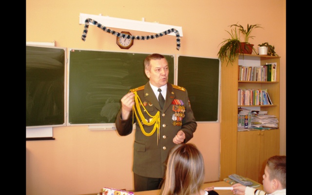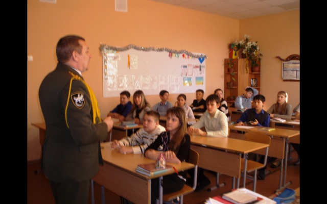 Прибывшие патриоты провели уроки мужества, на которых учащиеся посмотрели и обсудили видеофильм о Герое России Сергее Кислове — настоящем офицере и патриоте Отечества. Мальчишки и девчонки проявили большой интерес, задавали много вопросов и сами отвечали на вопросы почётных гостей. В ходе беседы были рассмотрены такие понятия как Родина, патриотизм, подвиг. Дети высказывали своё мнение, понимание сути этих слов. Обсудили и причины проявления фашизма на Украине.