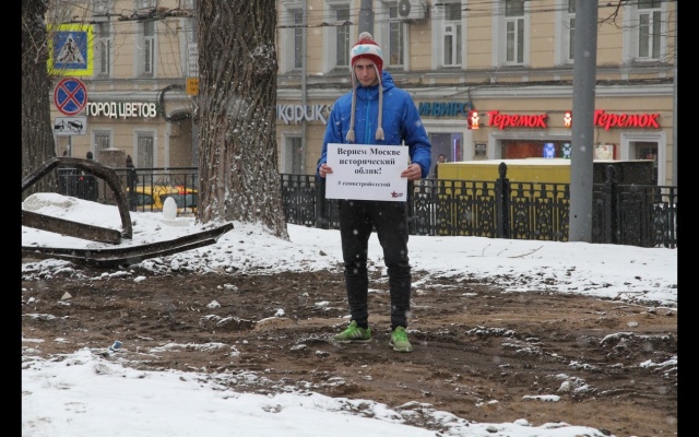 Активисты московского регионального отделения партии "РОДИНА" решили поддержать мэрию города, проведя серию одиночных пикетов на месте снесенных незаконных сооружений рядом со станциями метро Кропоткинская, Пушкинская и Новослободская.