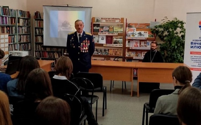 Встреча школьников с депутатом Совета города Новосибирска от партии "РОДИНА" и ветераном боевых действий в Афганистане Леонидом Рыбиным состоялась в читальном зале библиотеки им. М. Горького.