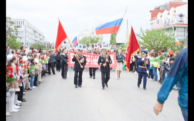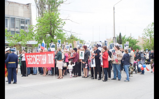 9 мая Евпатории Республики Крым активисты общественной организации жителей города "Справедливость" поддержали Всероссийскую акцию "Бессмертный полк".
