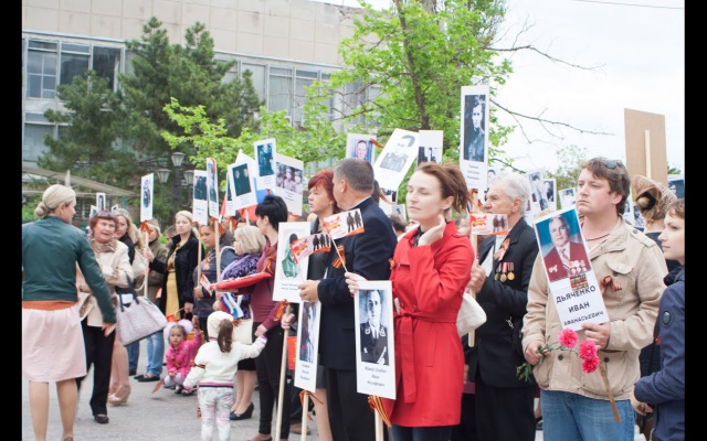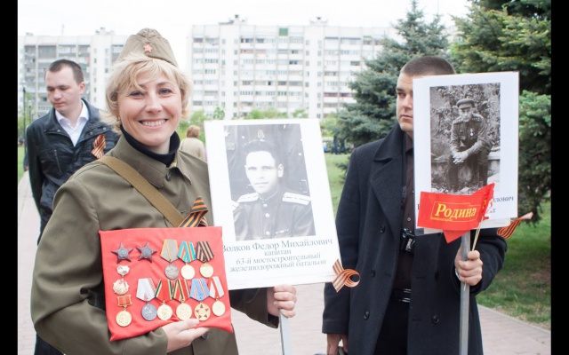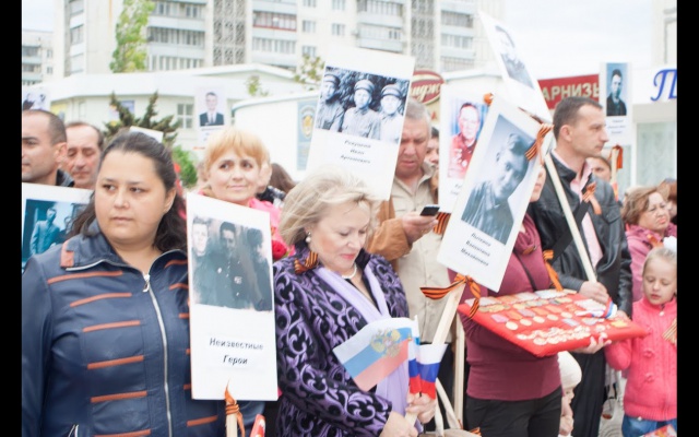 Активисты организовали изготовление штендеров с портретами фронтовиков и участников Великой Отечественной Войны, сформировали колонну в составе ста человек и возглавили шествие к мемориальному комплексу "Красная Горка". Шествие прошло с портретами фронтовиков под флагами Всероссийской политической партии "РОДИНА".