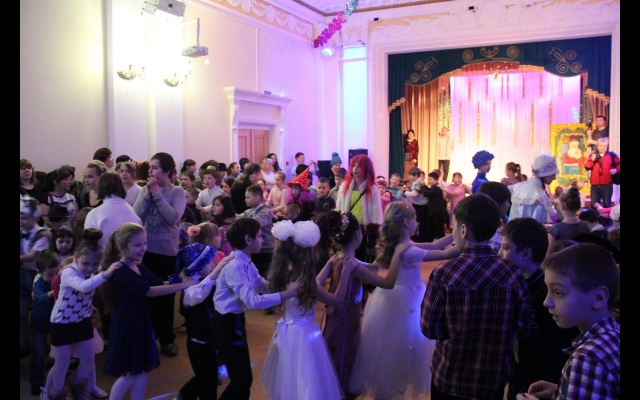 Перед началом театрализованного представления у большой нарядной елки в фойе ДК выступили самодеятельные артисты с разнообразной музыкальной и танцевальной программой. Творческие коллективы Дворца культуры подготовили для ребят новогоднюю дискотеку и игротеку, веселые хороводы с участием Деда Мороза и Снегурочки, сказочных персонажей, героев мультфильмов.