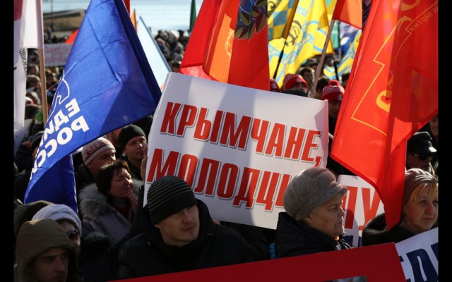 Напомним, в Крыму 16 марта прошёл референдум о статусе автономии. 96,77 % избирателей, принявших участие в голосовании, высказались за вхождение Крыма в состав РФ. По данным главы крымской комиссии по проведению референдума Михаила Малышева, явка составила 83,1 %.