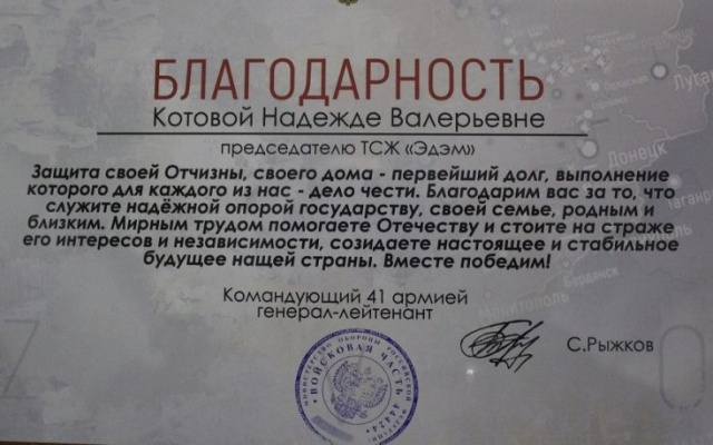 Волонтеры Клуба избирателей Вячеслава Илюхина получили благодарность от командующего 41-й общевойсковой Краснознамённой армии